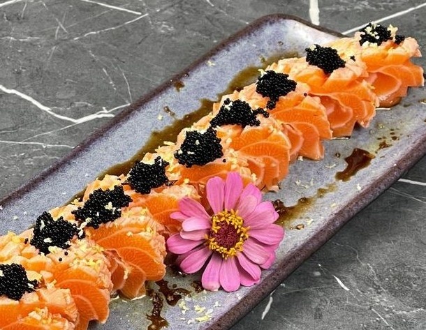 selada em corte especial, azeite trufado, flor de sal, ovas e raspas de limão siciliano