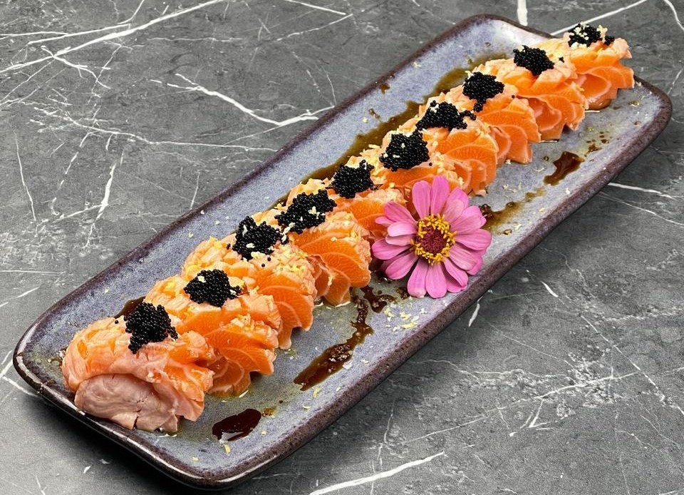 selada em corte especial, azeite trufado, flor de sal, ovas e raspas de limão siciliano